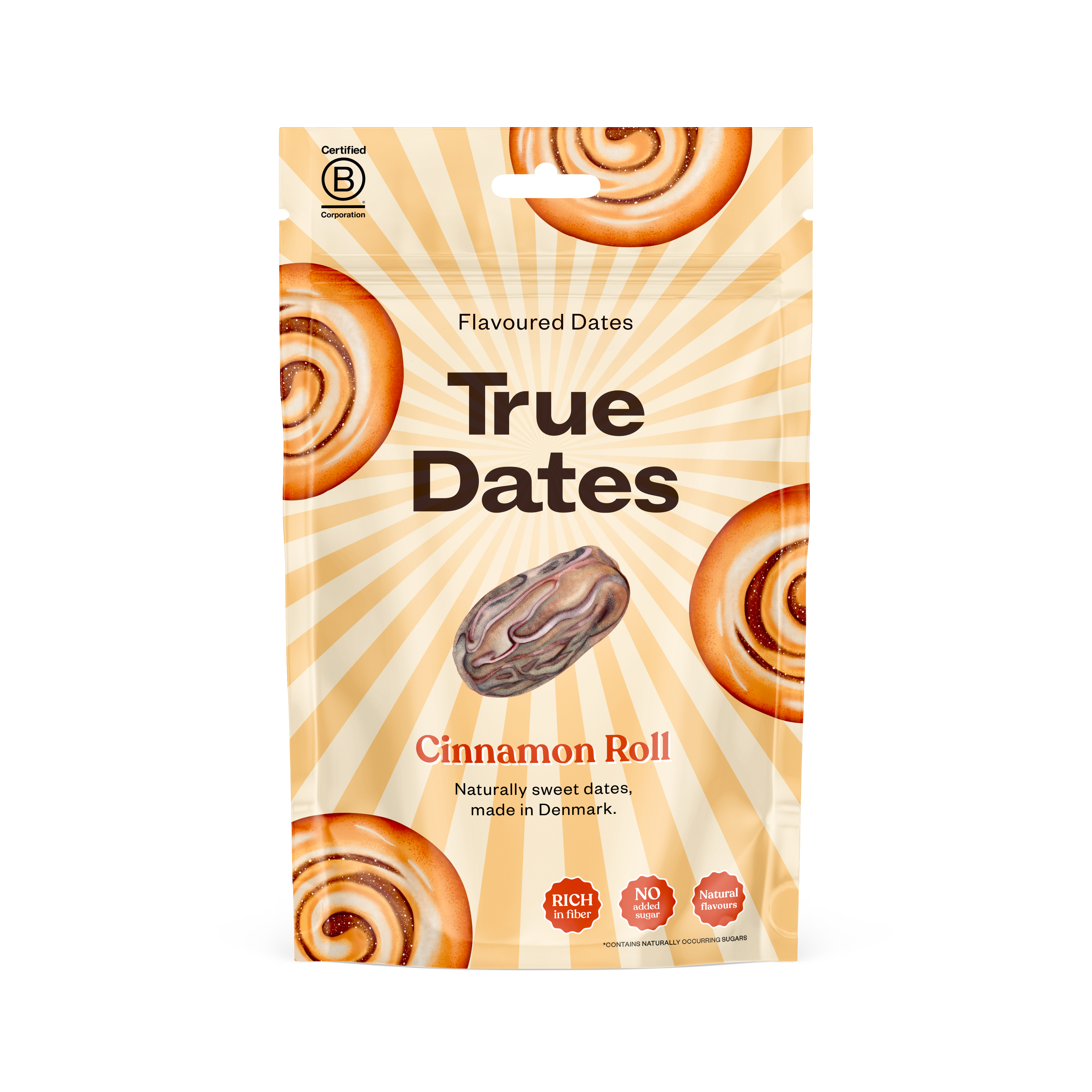 Descubre los Dátiles Cinnamon Roll de True Dates, una alternativa saludable a las gominolas clásicas. Elaborados con edulcorantes naturales como xilitol y glucósidos de esteviol, base de goma sin plástico y aromas naturales. El envase es biodegradable, cuidando el planeta mientras disfrutas de un snack delicioso.